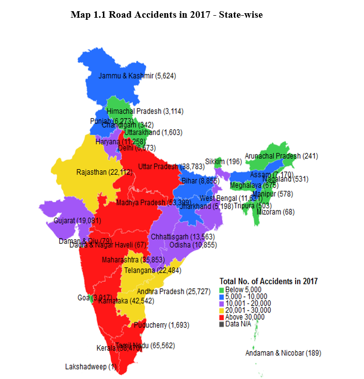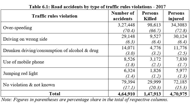 10. Reduction in number of road accidents- As per the Ministry's annual report on road accidents based on the data reported by Police authorities throughout India, there has been some marginal reduction in the number of road accidents and fatalities in 2017.
